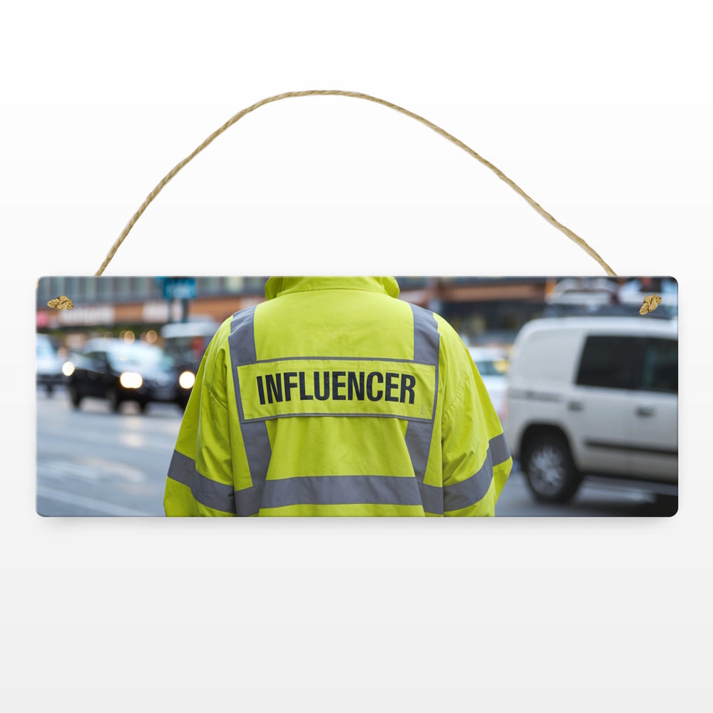 • Dieses Metallschild ist ein urkomisches Highlight! Es zeigt eine humorvolle Warnweste mit dem Aufdruck "Influencer". Das witzige Design passt perfekt in jedes Büro oder Zuhause. Aus hochwertigem, wetterbeständigem Metall gefertigt, ist es ein Hingucker drinnen und draußen. Ein echtes Must-have für alle, die sich selbst mit Humor nehmen!