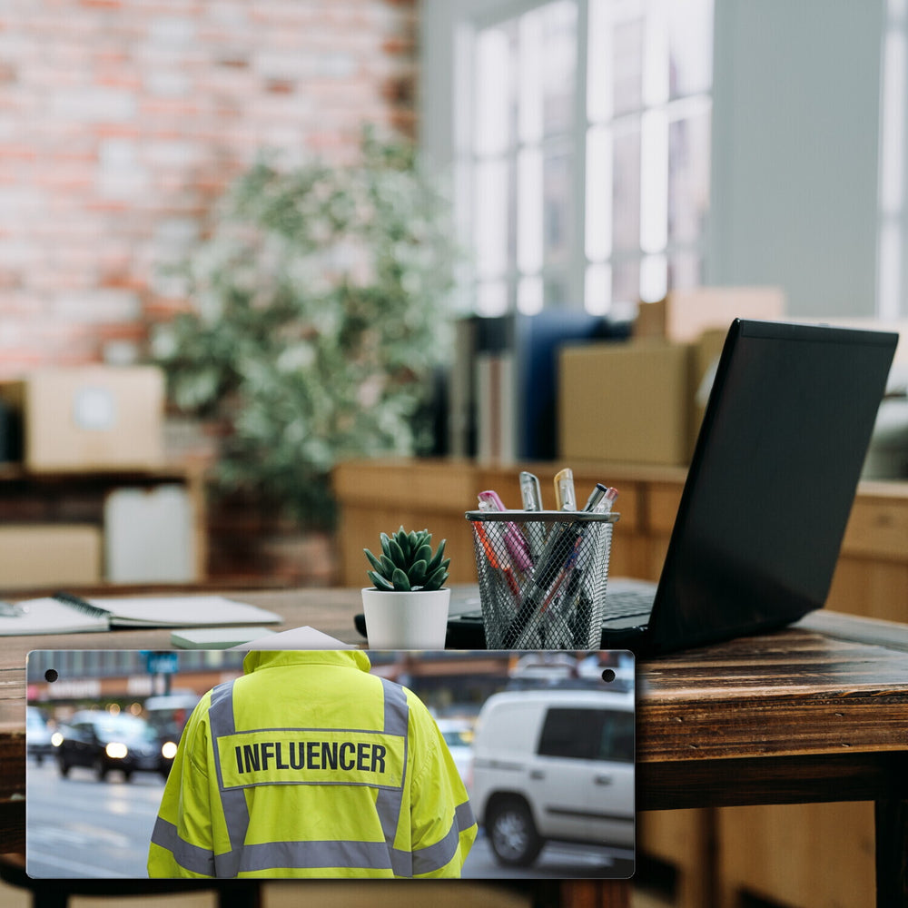 • 1x Warnweste Influencer Metallschild für Social Media Fans in der gewählten Größe