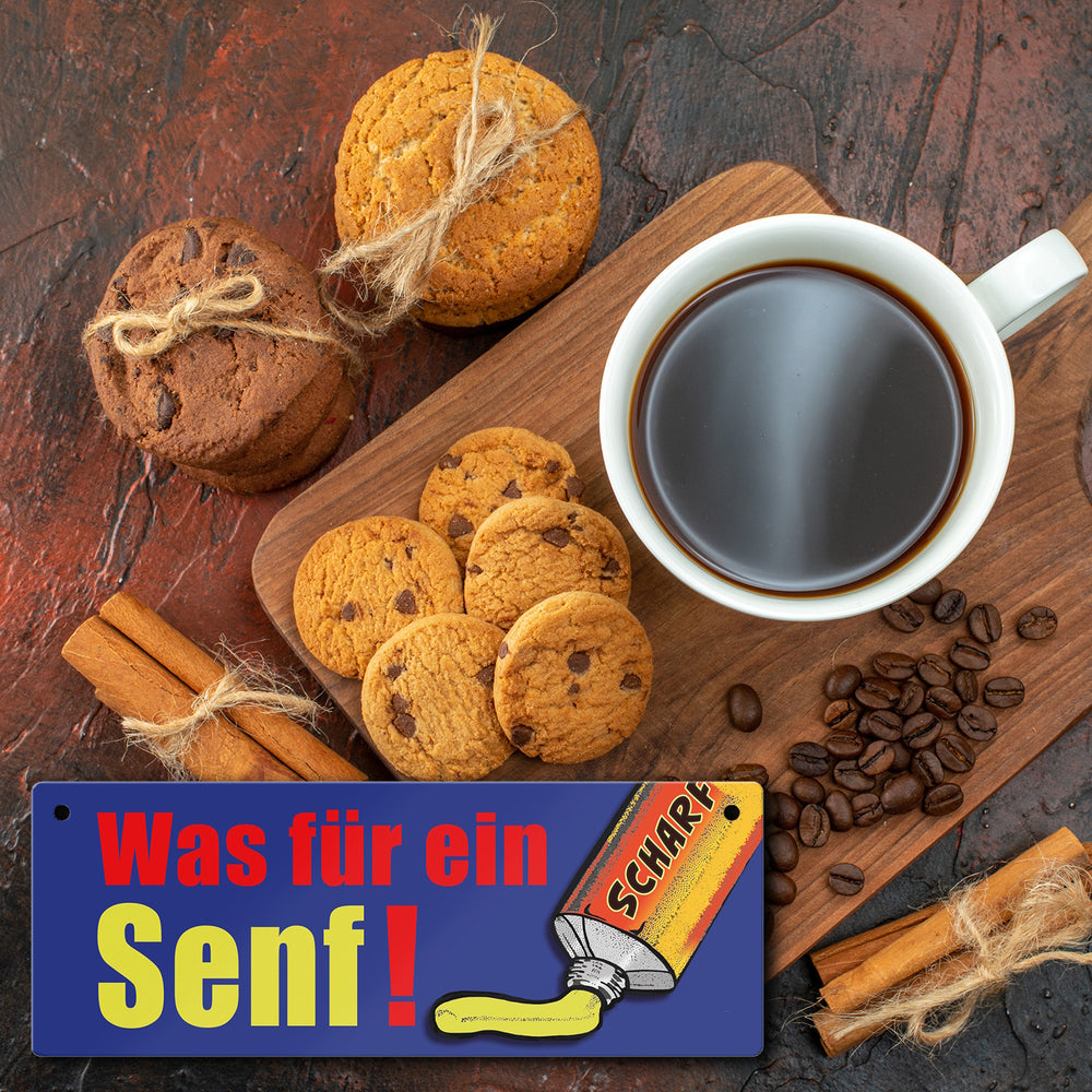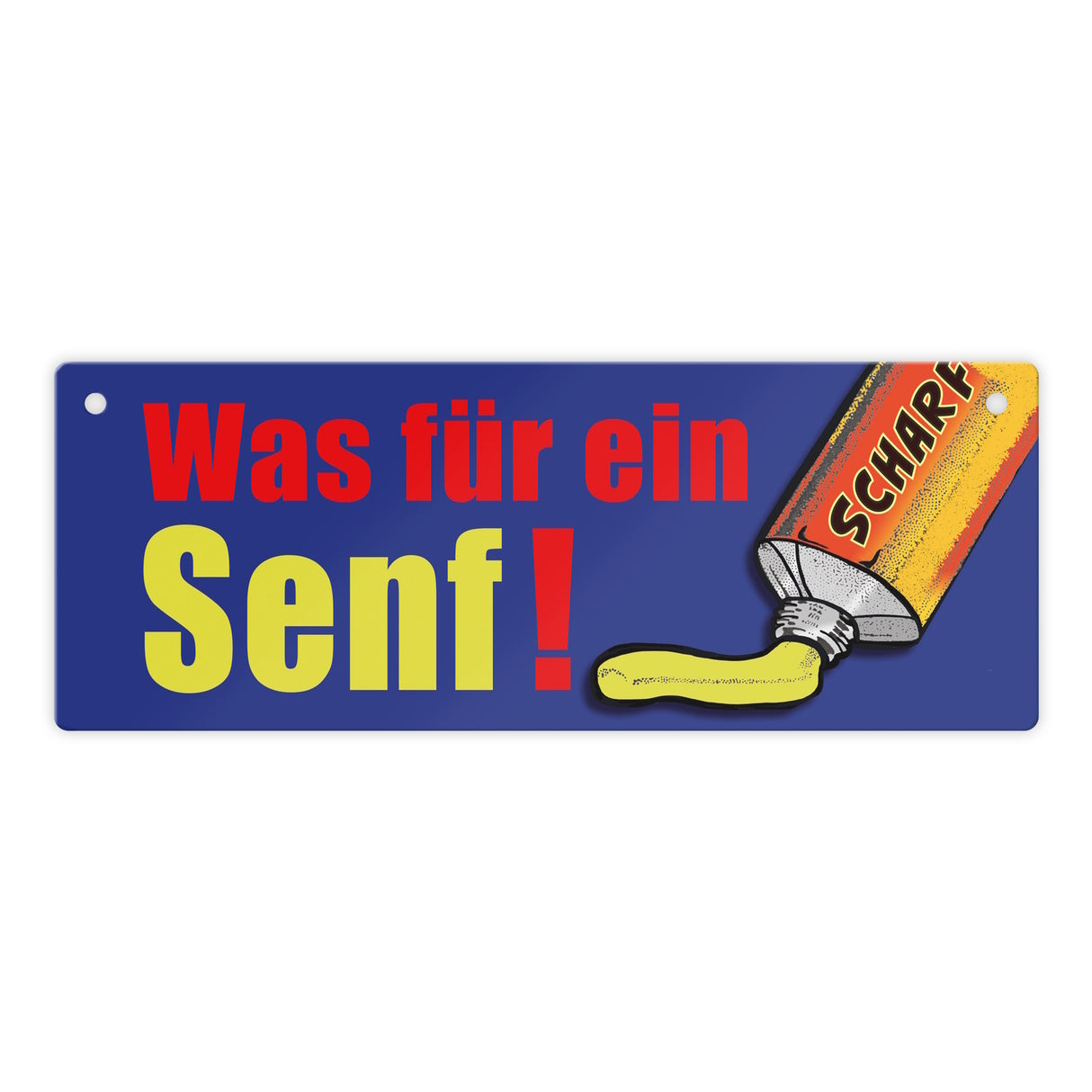 • 1x Was für ein Senf! Metallschild im Comicstil mit Senfmotiv und Spruch in der gewählten Größe