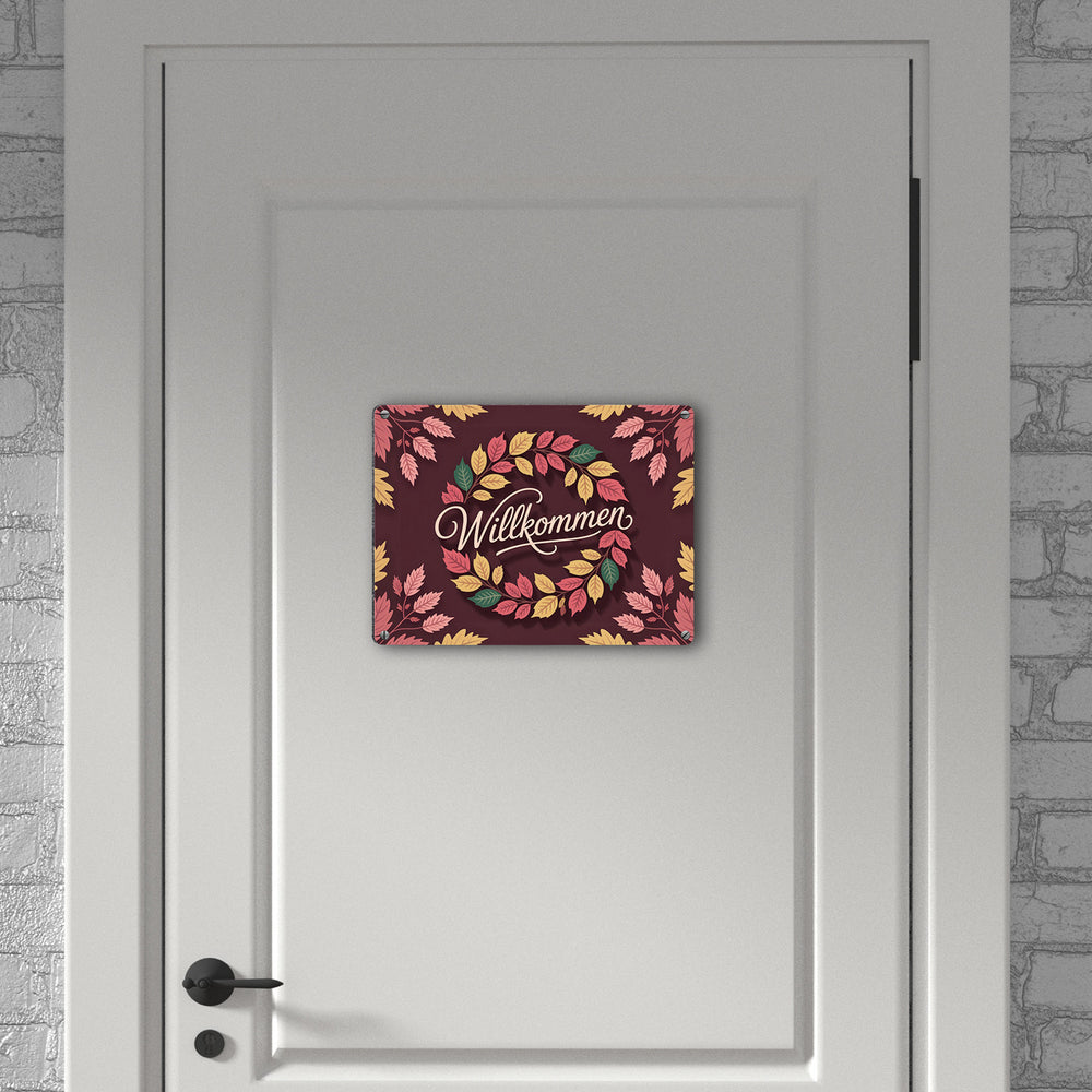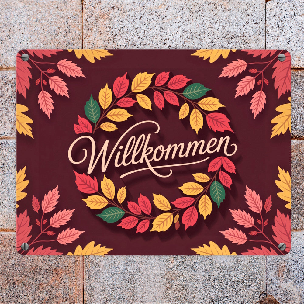Willkommen Herbstlaub Kranz Metallschild in 15x20 cm