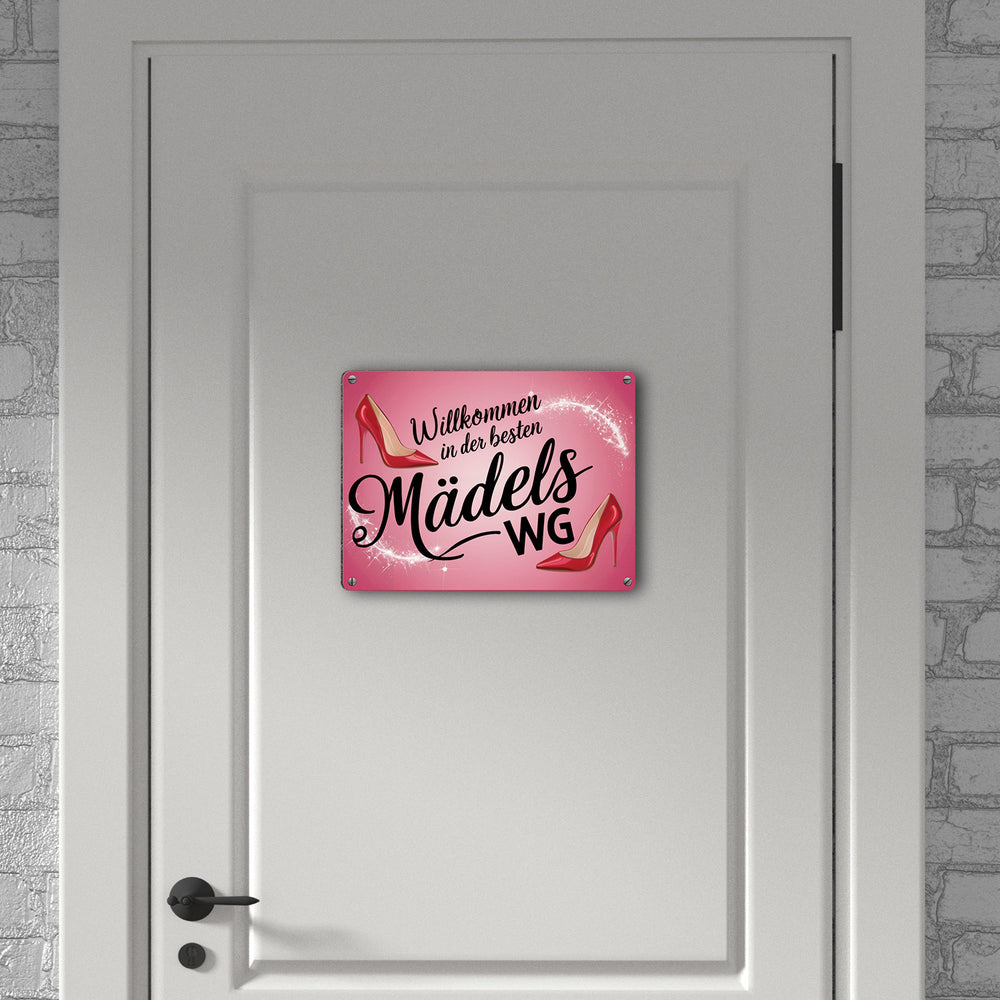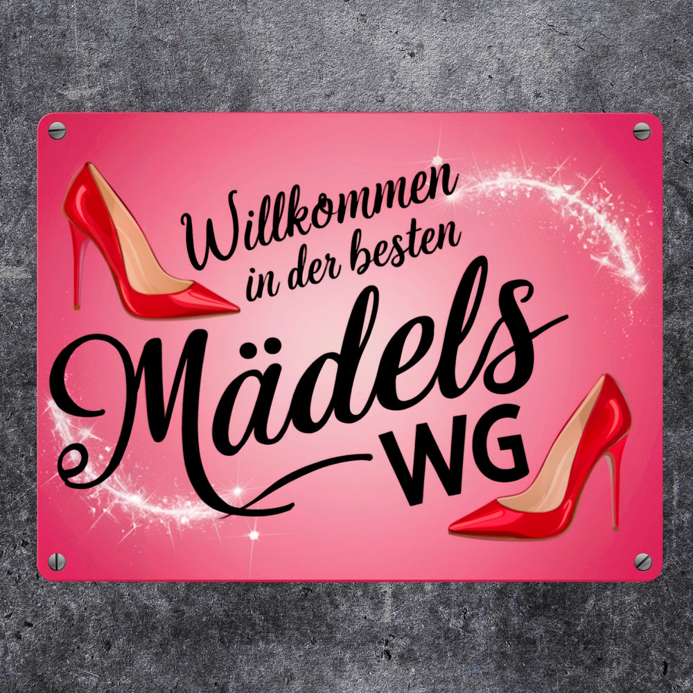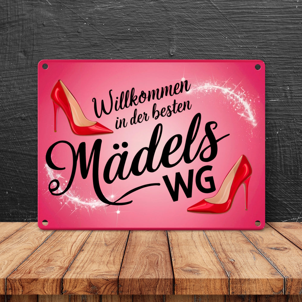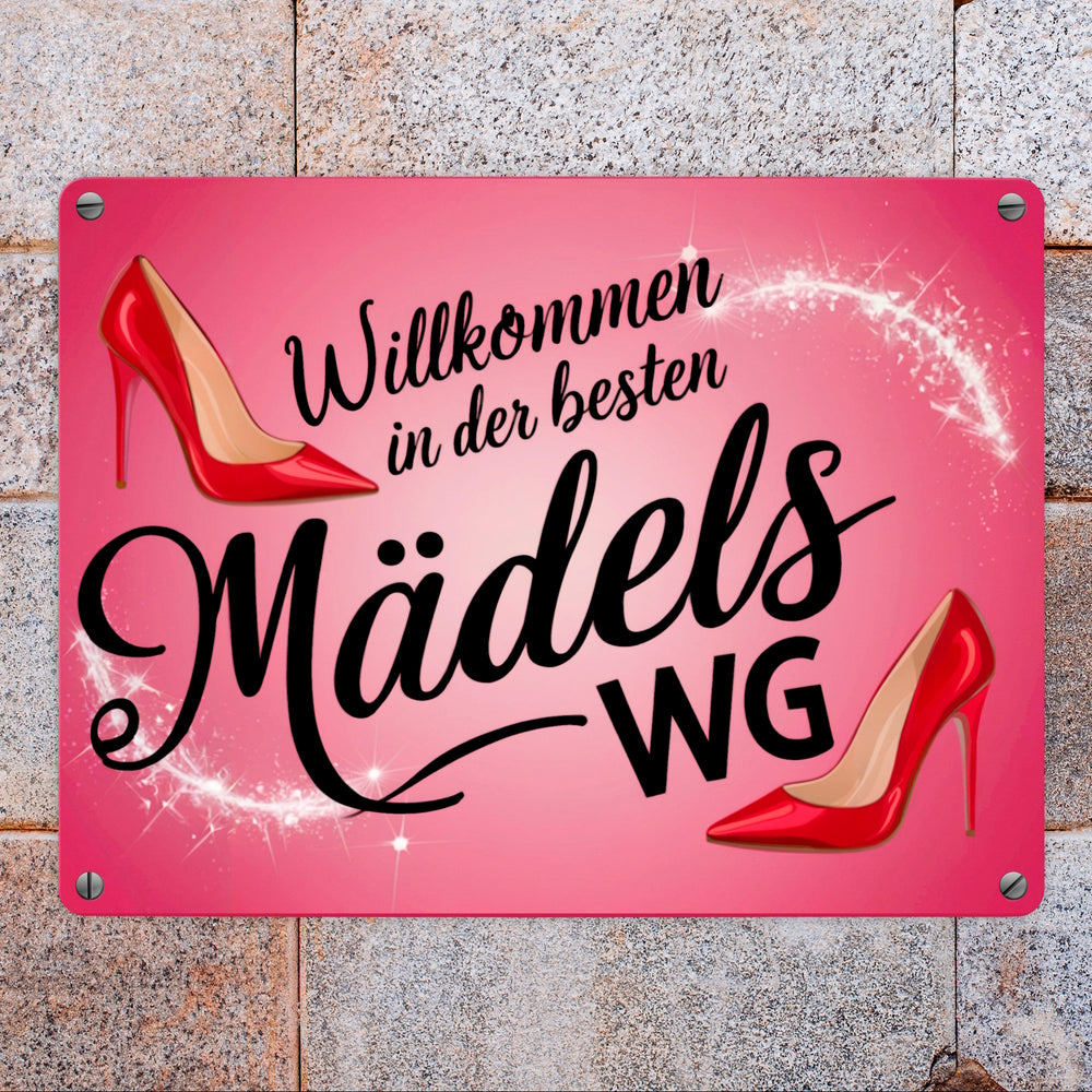 Willkommen in der besten MädelsWG Metallschild in 15x20 cm mit High-Heels