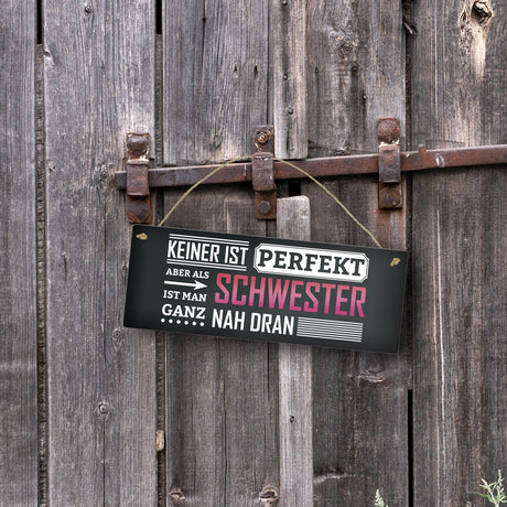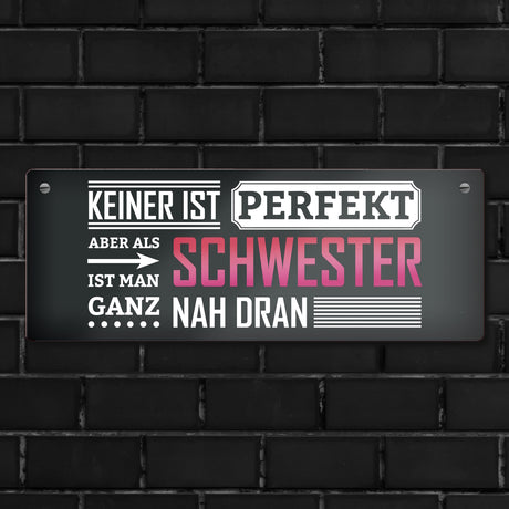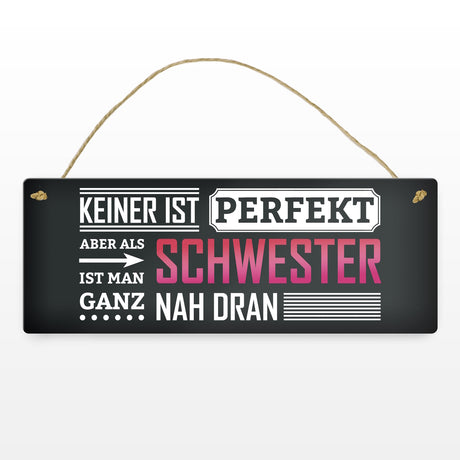 Ab €6,95Grundpreis /Nicht verfügbarAuf LagerMetallschild mit Spruch: Keiner ist perfekt, aber als Schwester ist man ganz nah dran