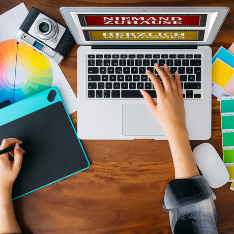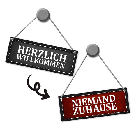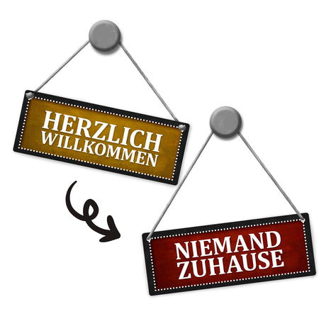 Ab €6,95Grundpreis /Nicht verfügbarAuf LagerNiemand Zuhause oder Willkommen Wendeschild mit Kordel in Rot und Gelb