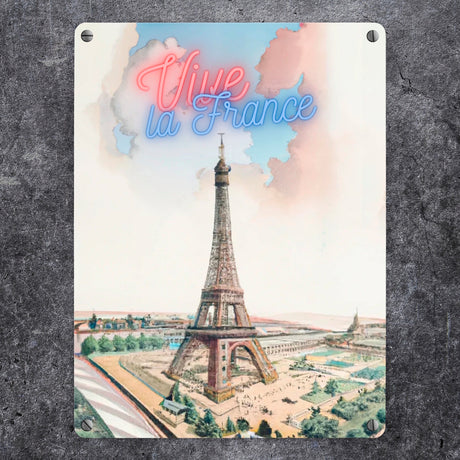 Ab €6,95Grundpreis /Nicht verfügbarAuf LagerVive la France Eiffelturm Metallschild in 15x20 cm im retro Look zum Thema Paris