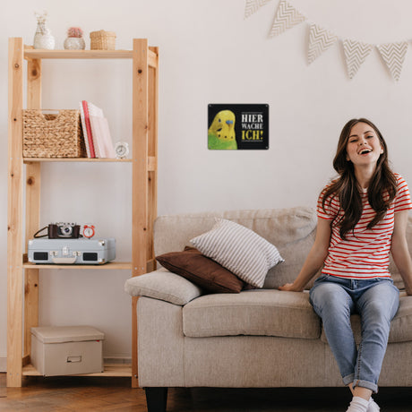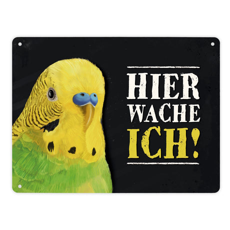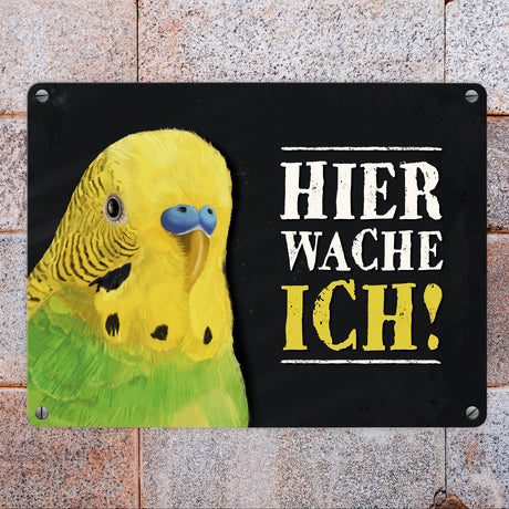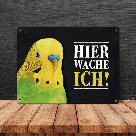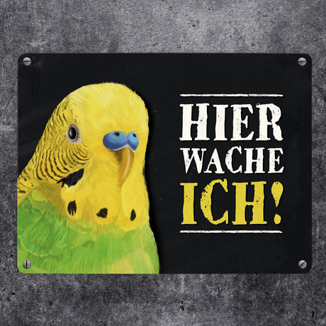 Ab €16,95Grundpreis /Nicht verfügbarAuf LagerMetallschild mit Wellensittich grün Motiv und Spruch: Hier wache ich!
