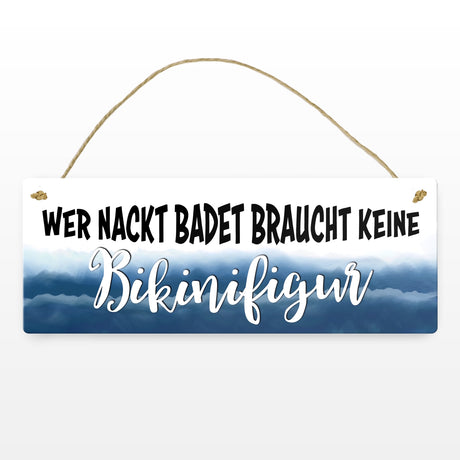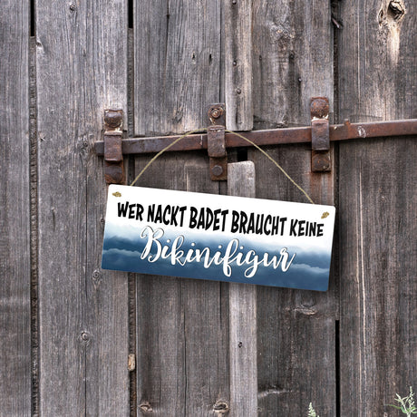 €6,95Grundpreis /Nicht verfügbarAuf LagerMetallschild mit Spruch: Wer nackt badet braucht keine Bikinifigur