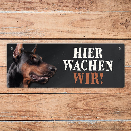 €8,95Grundpreis /Nicht verfügbarAuf LagerMetallschild mit Dobermann Motiv und Spruch: Hier wachen wir!
