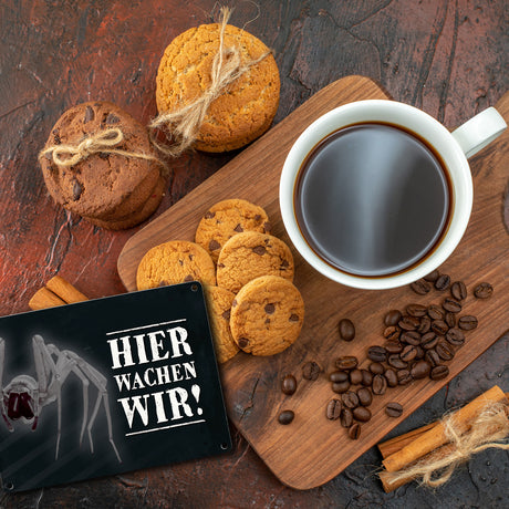 Ab €6,95Grundpreis /Nicht verfügbarAuf LagerMetallschild mit Spinne Motiv und Spruch: Hier wache ich!