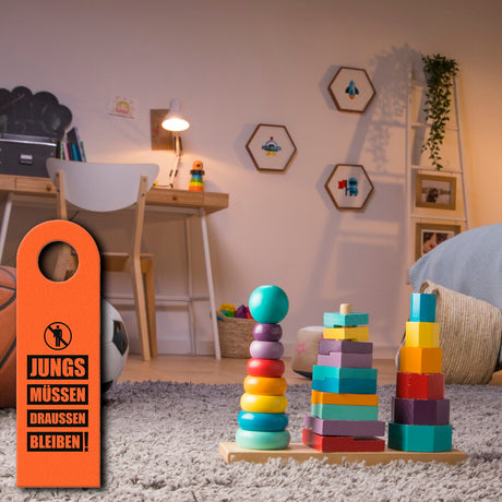 €8,95Grundpreis /Nicht verfügbarAuf LagerKinderzimmer Türhänger in Orange mit Spruch: Jungs müssen draussen bleiben