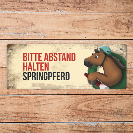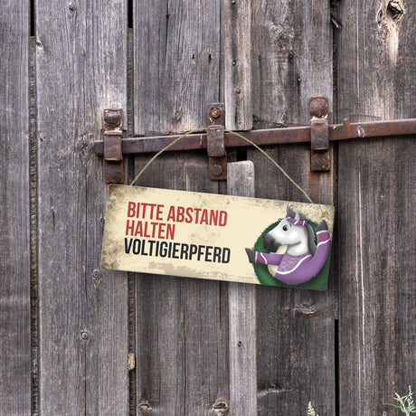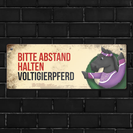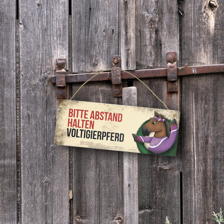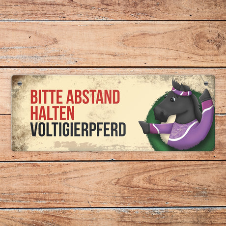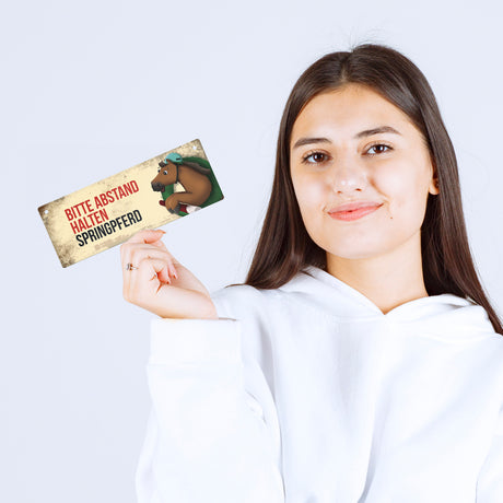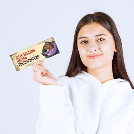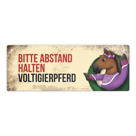 Ab €6,95Grundpreis /Nicht verfügbarAuf LagerMetallschild mit braunem Voltigierpferd Motiv und Spruch: Bitte Abstand halten