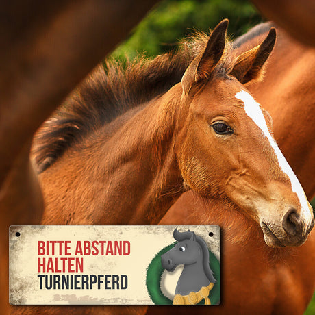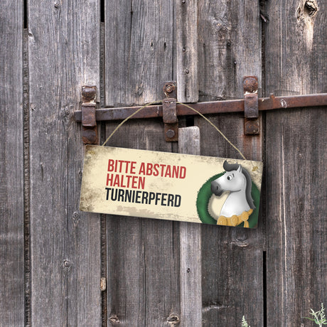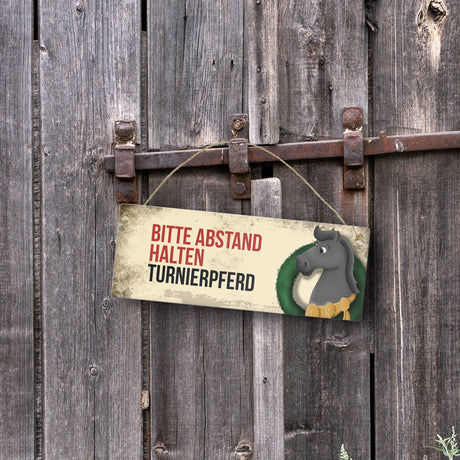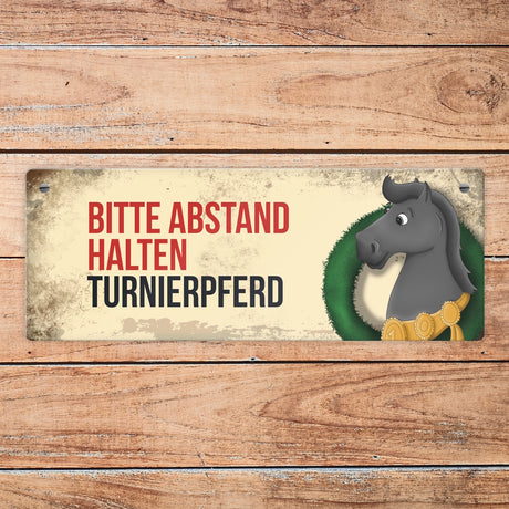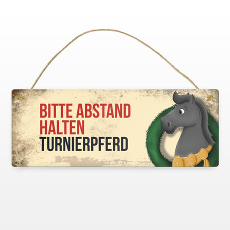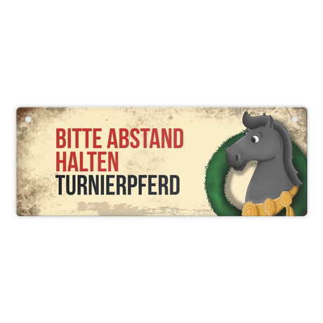 Ab €6,95Grundpreis /Nicht verfügbarAuf LagerMetallschild mit schwarzem Turnierpferd Motiv und Spruch: Bitte Abstand halten