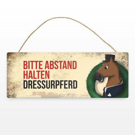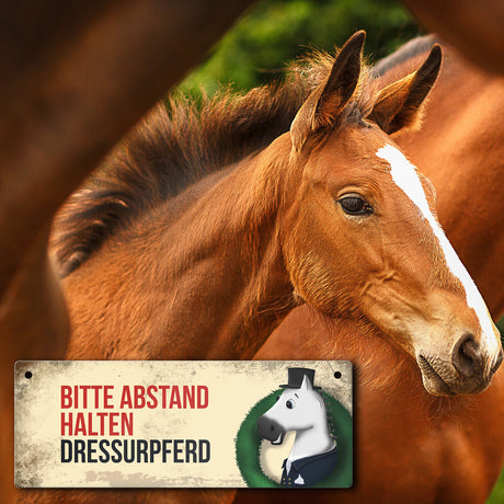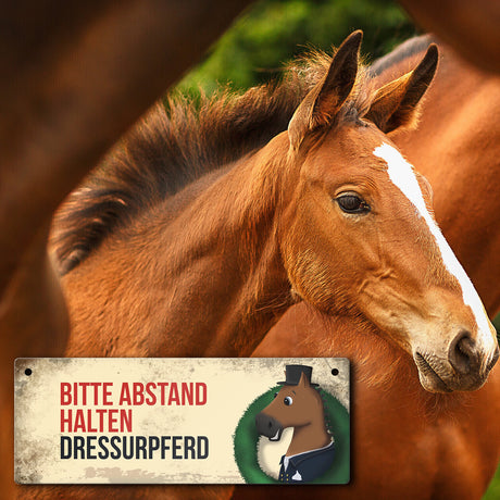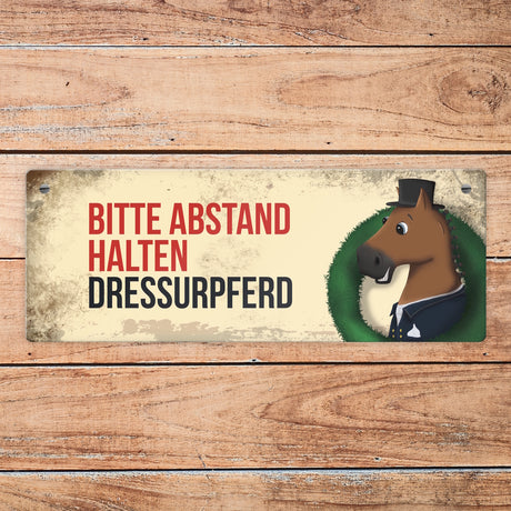 €6,95Grundpreis /Nicht verfügbarAuf LagerMetallschild mit braunem Dressurpferd Motiv und Spruch: Bitte Abstand halten