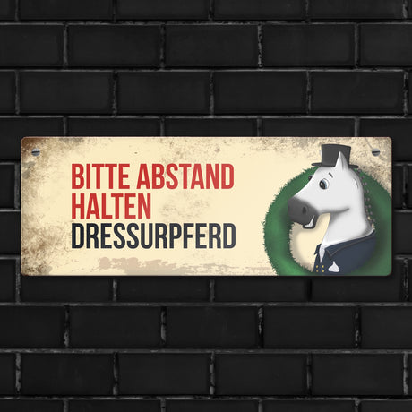 Ab €6,95Grundpreis /Nicht verfügbarAuf LagerMetallschild mit weißem Dressurpferd Motiv und Spruch: Bitte Abstand halten