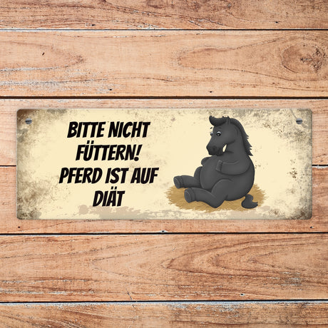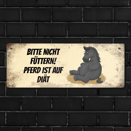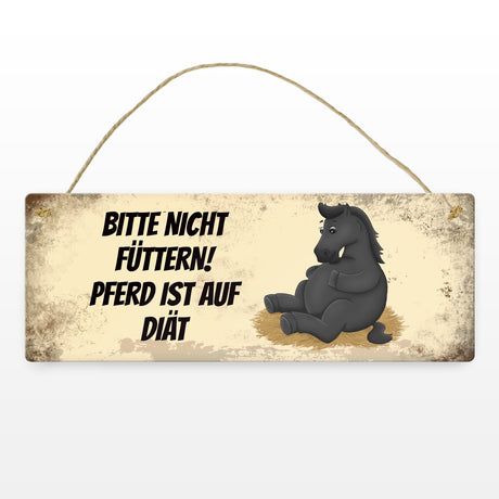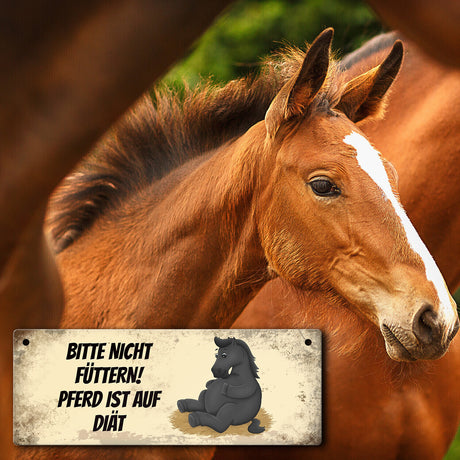 Ab €6,95Grundpreis /Nicht verfügbarAuf LagerMetallschild mit schwarzem Pferd Motiv und Spruch: Bitte nicht füttern - Diät