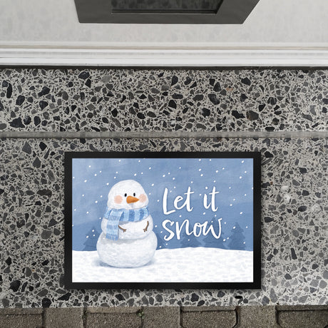 Ab €6,95Grundpreis /Nicht verfügbarAuf LagerSchneemann im Wintersturm Fußmatte in 35x50 cm mit Spruch Let it snow