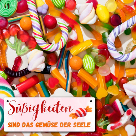 Ab €6,95Grundpreis /Nicht verfügbarAuf LagerBonbon Metallschild mit Spruch Süßigkeiten sind das Gemüse der Seele