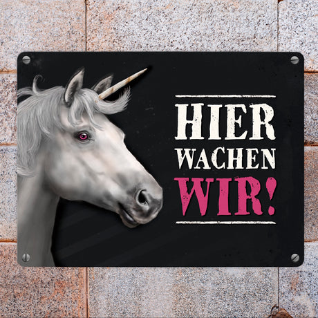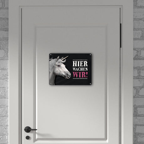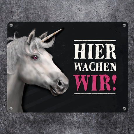Ab €6,95Grundpreis /Nicht verfügbarAuf LagerMetallschild mit Einhorn Motiv und Spruch: Hier wachen wir!