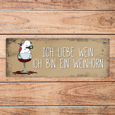 Ab €6,95Grundpreis /Nicht verfügbarAuf LagerHoneycorns Metallschild mit Einhorn Motiv und Spruch: Ich liebe Wein, ich bin ein Weinhorn