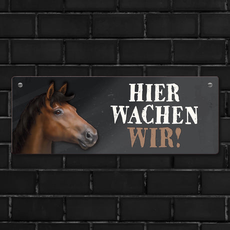 Ab €8,95Grundpreis /Nicht verfügbarAuf LagerMetallschild mit Pferd Motiv und Spruch: Hier wachen wir!