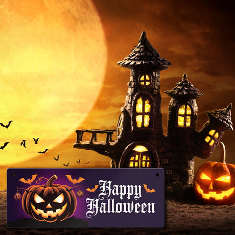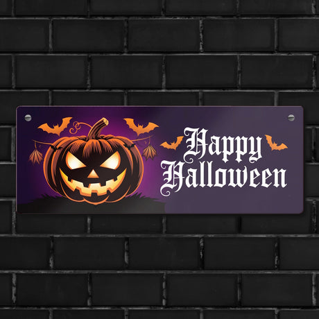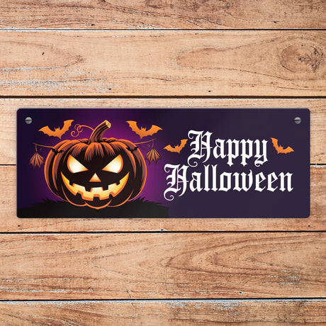 Ab €6,95Grundpreis /Nicht verfügbarAuf LagerHappy Halloween Trick or Treat Metallschild in lila mit süßem Kürbis