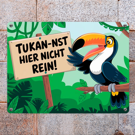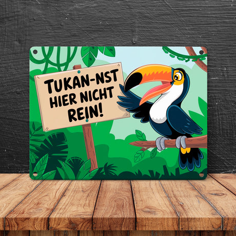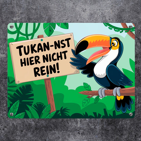 Ab €4,90Grundpreis /Nicht verfügbarAuf LagerTukan-nst hier nicht rein! Metallschild in 15x20 cm mit Tukan im Dschungel