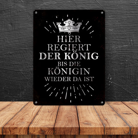 Ab €8,95Grundpreis /Nicht verfügbarAuf LagerMetallschild mit Spruch: Hier regiert der König, bis die ...