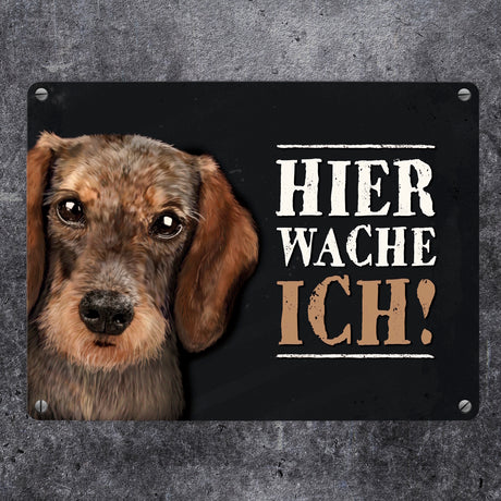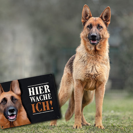 Ab €16,95Grundpreis /Nicht verfügbarAuf LagerHund bewacht Tür Hier wache ich Metallschild in 15x20 cm