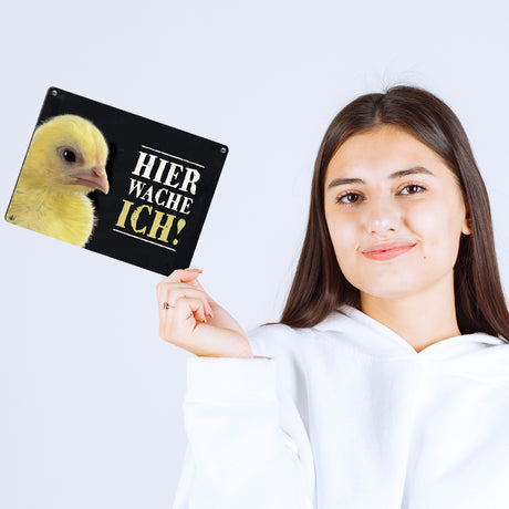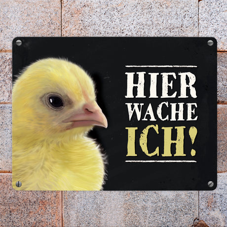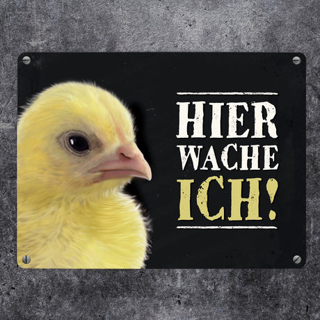 Ab €6,95Grundpreis /Nicht verfügbarAuf LagerMetallschild mit Küken Motiv und Spruch: Hier wache ich!