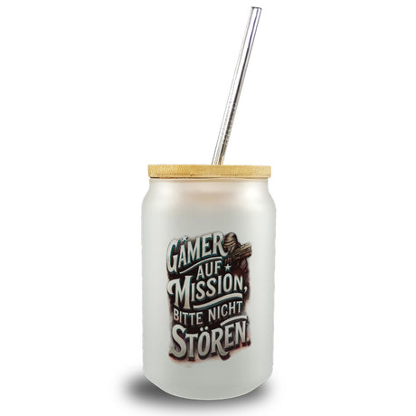 €3,95Grundpreis /Nicht verfügbarAuf LagerGamer auf Mission Trinkglas mit Bambusdeckel Bitte nicht stören