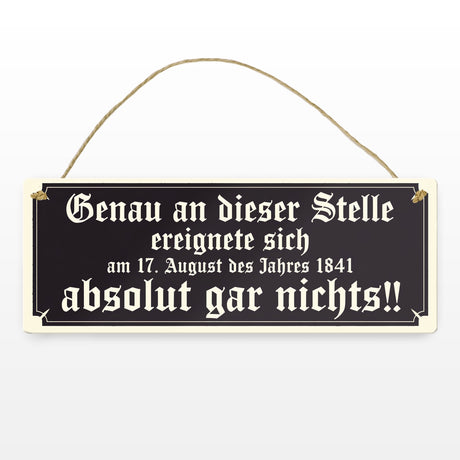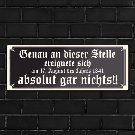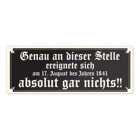 €9,95Grundpreis /Nicht verfügbarAuf LagerGenau an dieser Stelle ereignete sich nichts Metallschild Humor