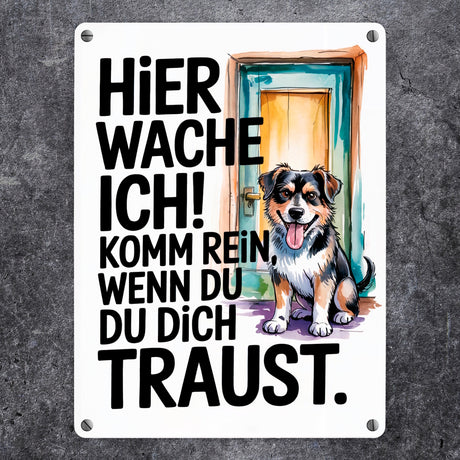 Ab €6,95Grundpreis /Nicht verfügbarAuf LagerHier wache ich! Komm rein wenn du dich traust Metallschild in 15x20 cm Hund