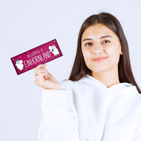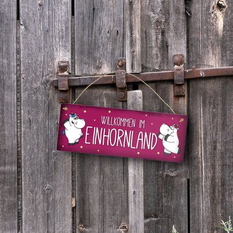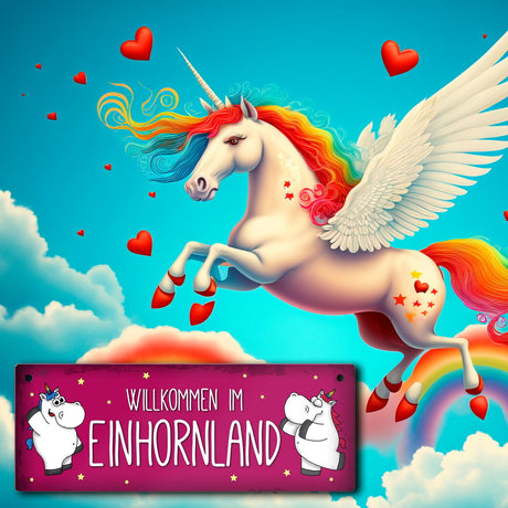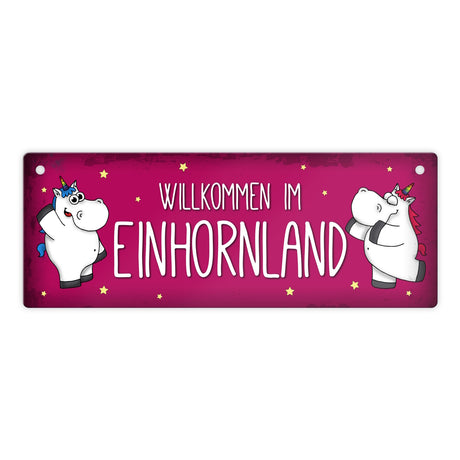Ab €6,95Grundpreis /Nicht verfügbarAuf LagerHoneycorns Metallschild mit Einhorn Stadtschild Motiv und Spruch: Willkommen im Einhornland