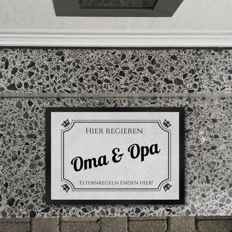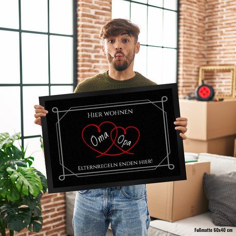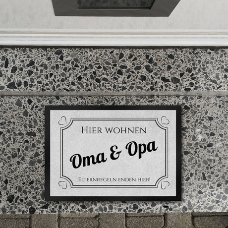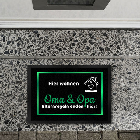 Ab €6,95Grundpreis /Nicht verfügbarAuf LagerHier wohnen Opa und Oma Fußmatte - Elternregeln enden hier mit Herz