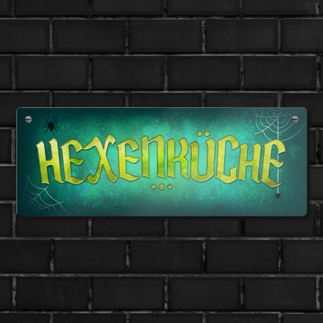 Küche Metallschild mit Spinne Motiv und Spruch: Hexenküche