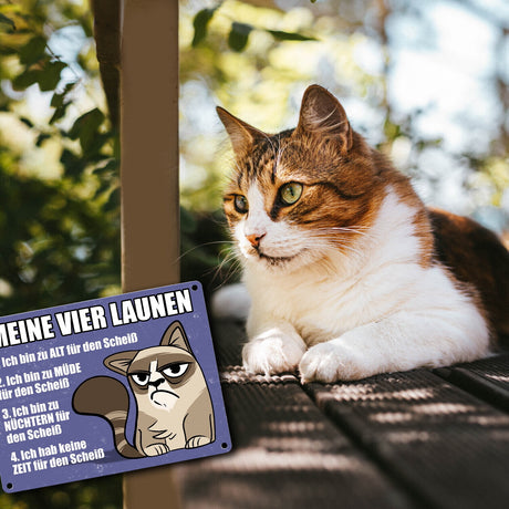 Ab €6,95Grundpreis /Nicht verfügbarAuf LagerMeine vier Launen Metallschild mit der lustigen grummeligen Katze