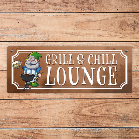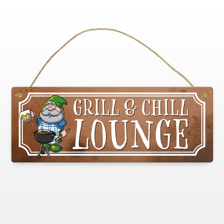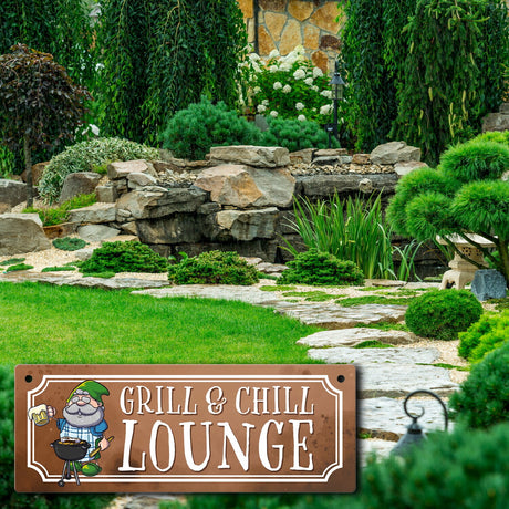 Ab €6,95Grundpreis /Nicht verfügbarAuf LagerGrill & Chill Lounge Metallschild mit lustigem Gartenzwerg