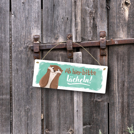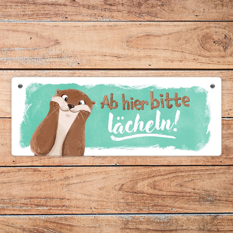 Lachender Otter Metallschild mit Spruch Ab hier bitte lächeln