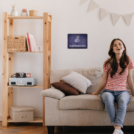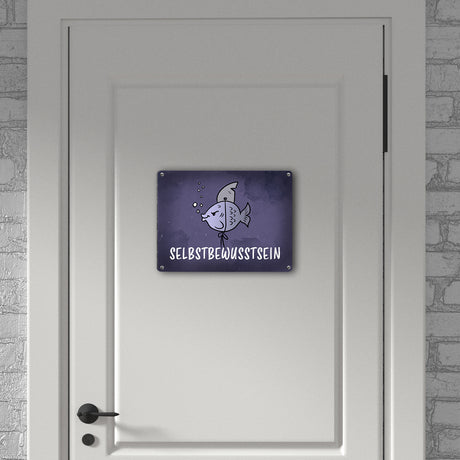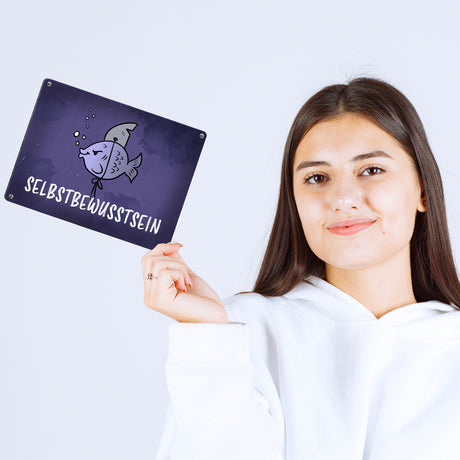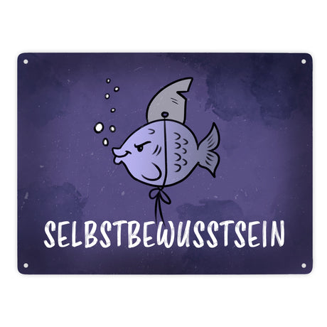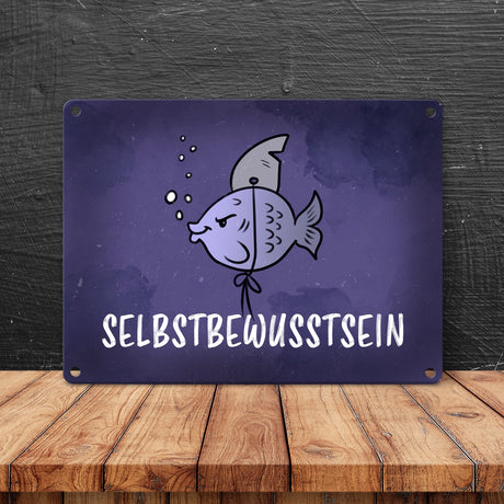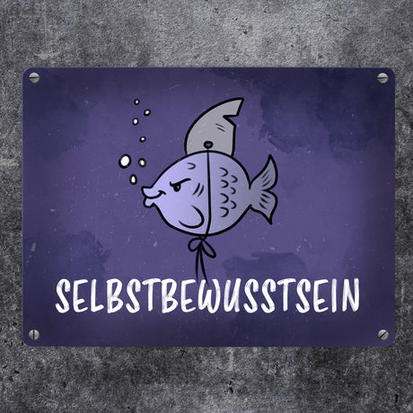 Selbstbewusstsein - Metallschild mit dem gewitzten Fisch mit Haifischflosse