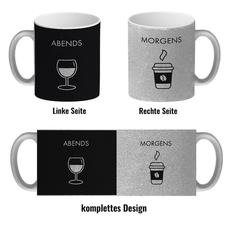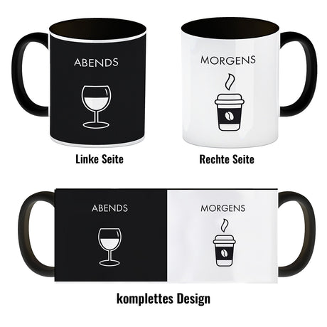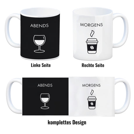 Ab €6,95Grundpreis /Nicht verfügbarAuf LagerMorgens und Abends Kaffeebecher mit Kaffeebecher und Weinglas Wendemotiv