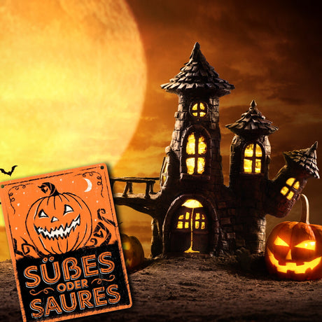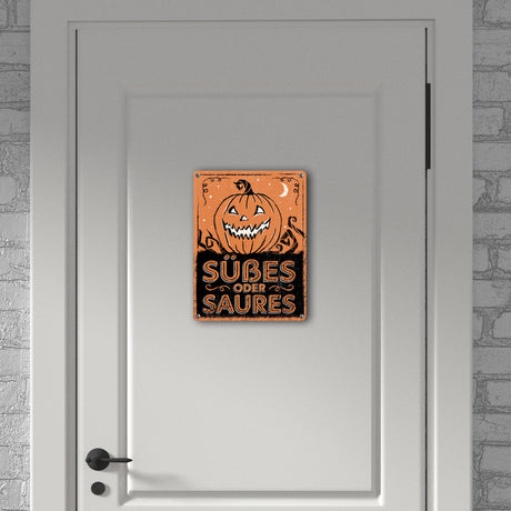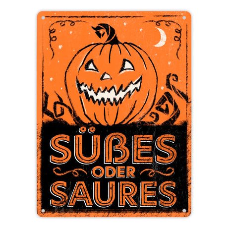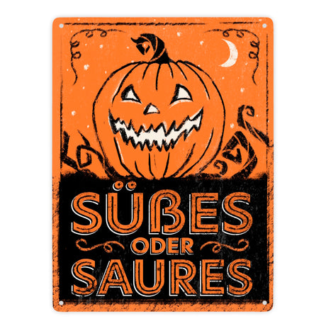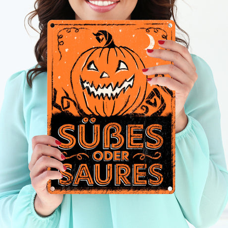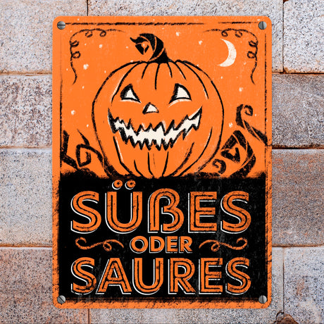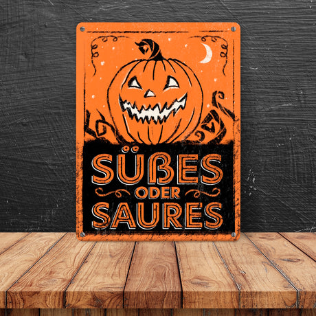 Ab €6,95Grundpreis /Nicht verfügbarAuf LagerMetallschild mit Halloween Kürbis Motiv im used Look - Süßes oder Saures