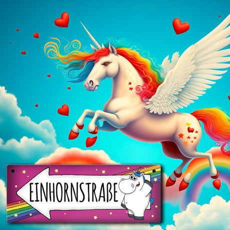 Ab €6,95Grundpreis /Nicht verfügbarAuf LagerHoneycorns Metallschild mit Einhorn Motiv und Spruch: Einhornstraße