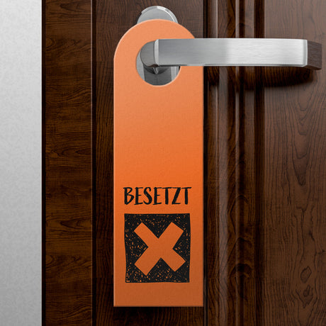 Besetzt oder Frei Türhänger in Orange mit Symbolen für die Toilettentür