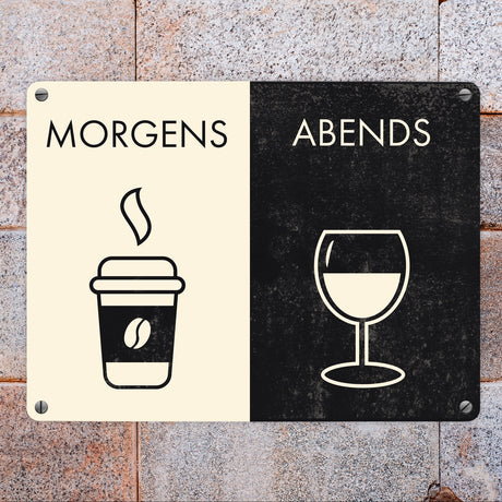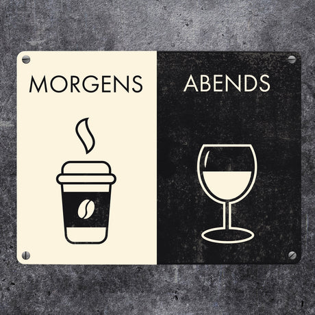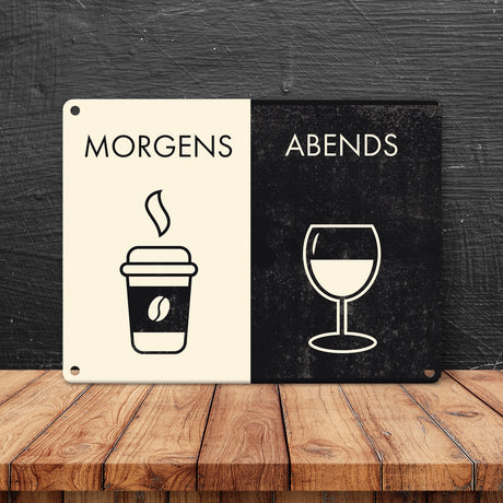 Ab €6,95Grundpreis /Nicht verfügbarAuf LagerMorgens und Abends Metallschild mit Kaffeebecher und Weinglas Motiven