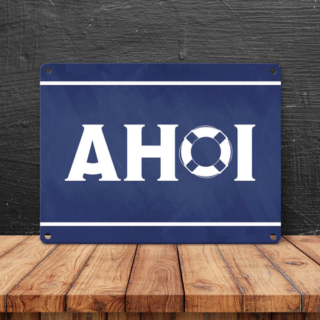 Ab €16,95Grundpreis /Nicht verfügbarAuf LagerMetallschild mit maritimen Design - Ahoi Schriftzug mit Rettungsring Motiv