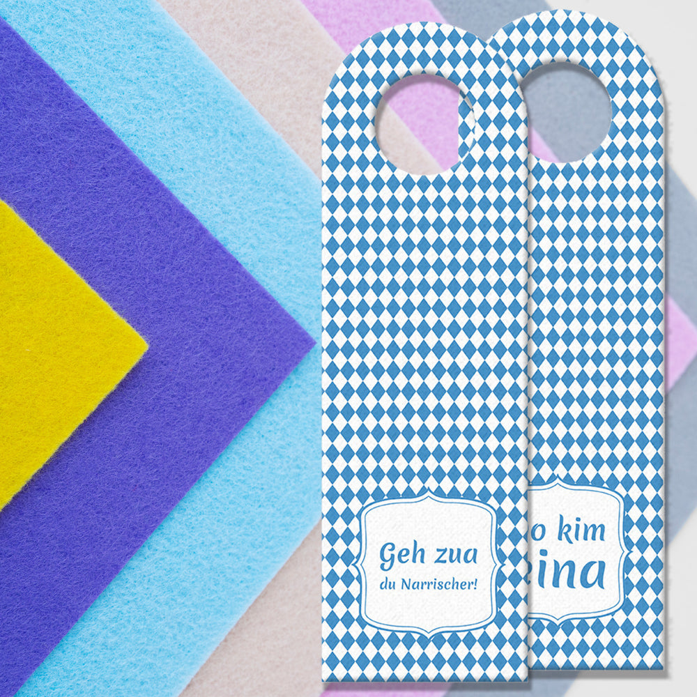 • Einzeln erhältlich oder als 3er- und 10er-Sparset. Aus hochwertigem Filz mit praktischem Loch für die Türklinke. Mit Sorgfalt in Handarbeit hergestellt in unserer Türhänger-Manufaktur in Deutschland.