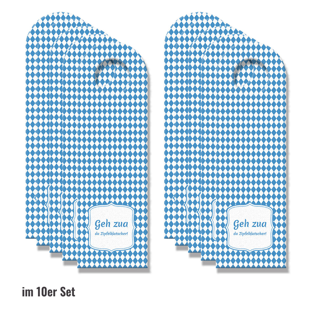 Bringen Sie ein bisschen bayrischen Charme in Ihr Zuhause! Unser Bayrischer Türanhänger - Do kim eina oder geh zua du Zipfelklatscher ist der perfekte Weg, um unerwünschten Gästen mitzuteilen, dass sie nicht willkommen sind. Dieser Türklatscher besteht aus hochwertigem Filz und wird mit viel Sorgfalt in Handarbeit in unserer Manufaktur hergestellt. Er ist in Einzelstücken sowie als Spar-Sets mit 3 oder 10 Stück erhältlich und bringt eine eindeutige bayrische Botschaft mit: Geh zua du Zipfelklatscher - Do kim eina . Mit diesem lustigen Türklatscher wird Ihr Zuhause zu einer authentischen bayrischen Zone und Sie sagen den unerwünschten Besuchern auf charmante Art und Weise, dass sie verschwinden sollen.
