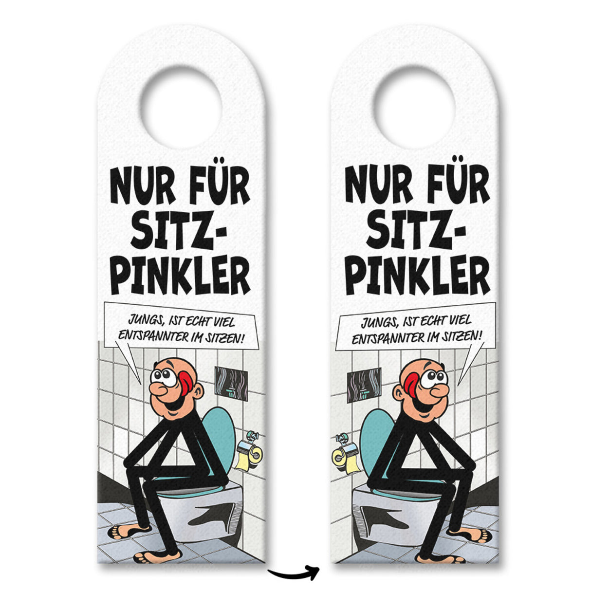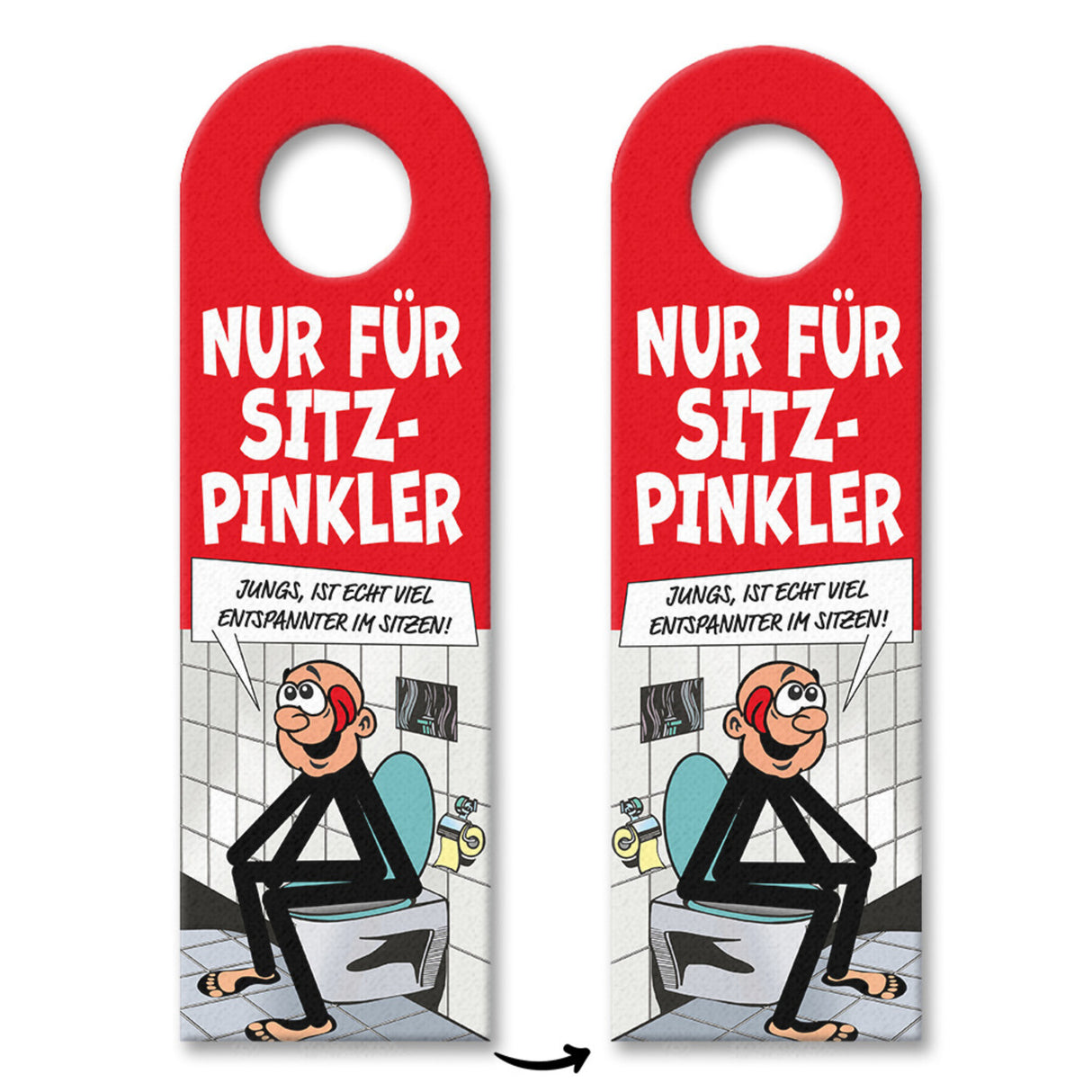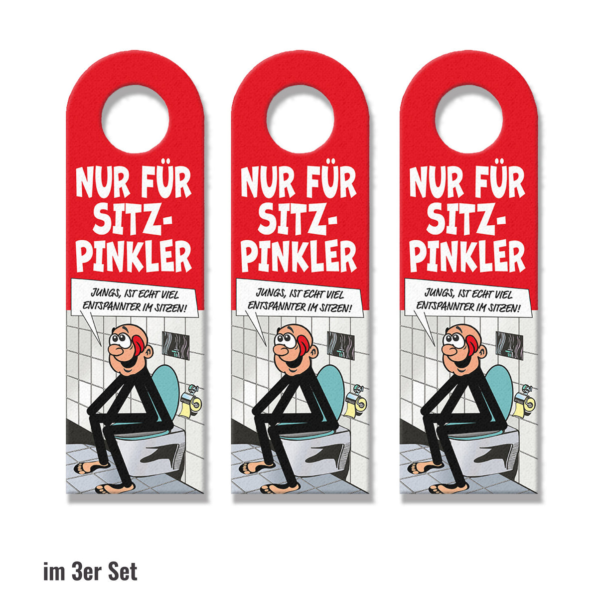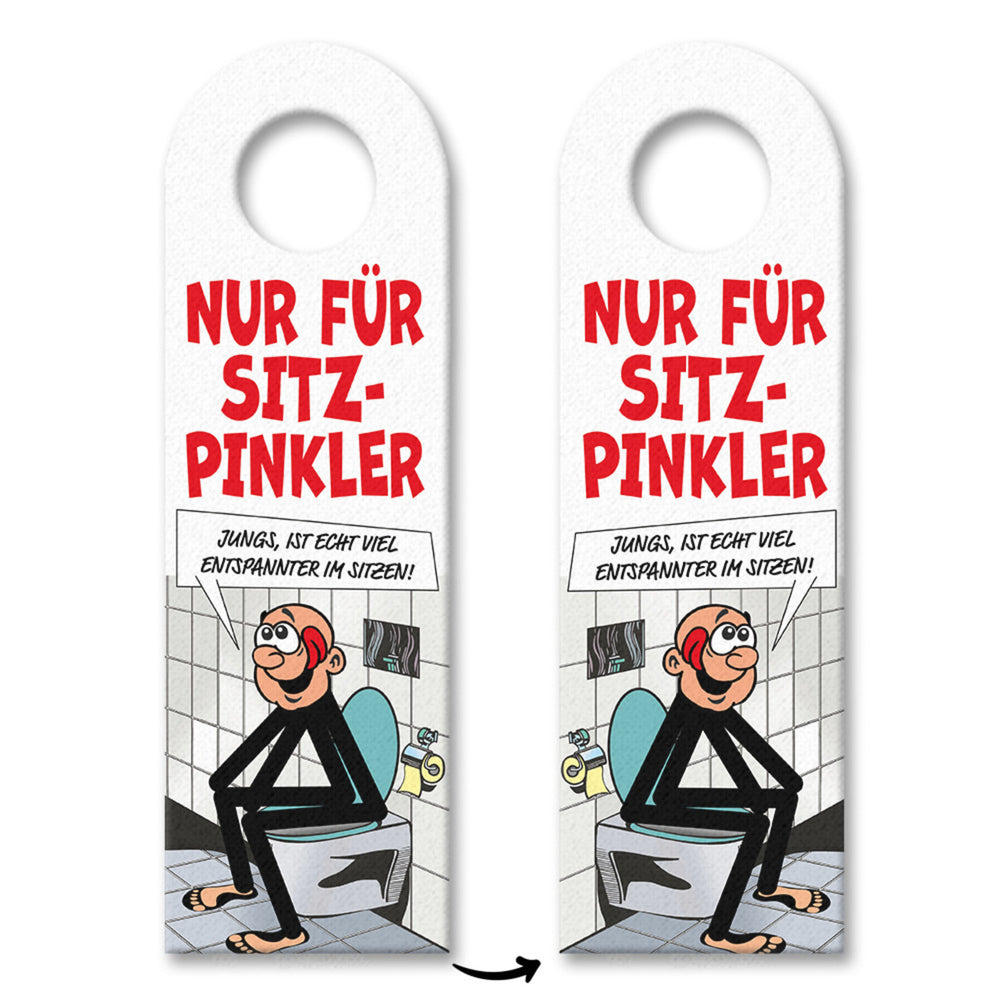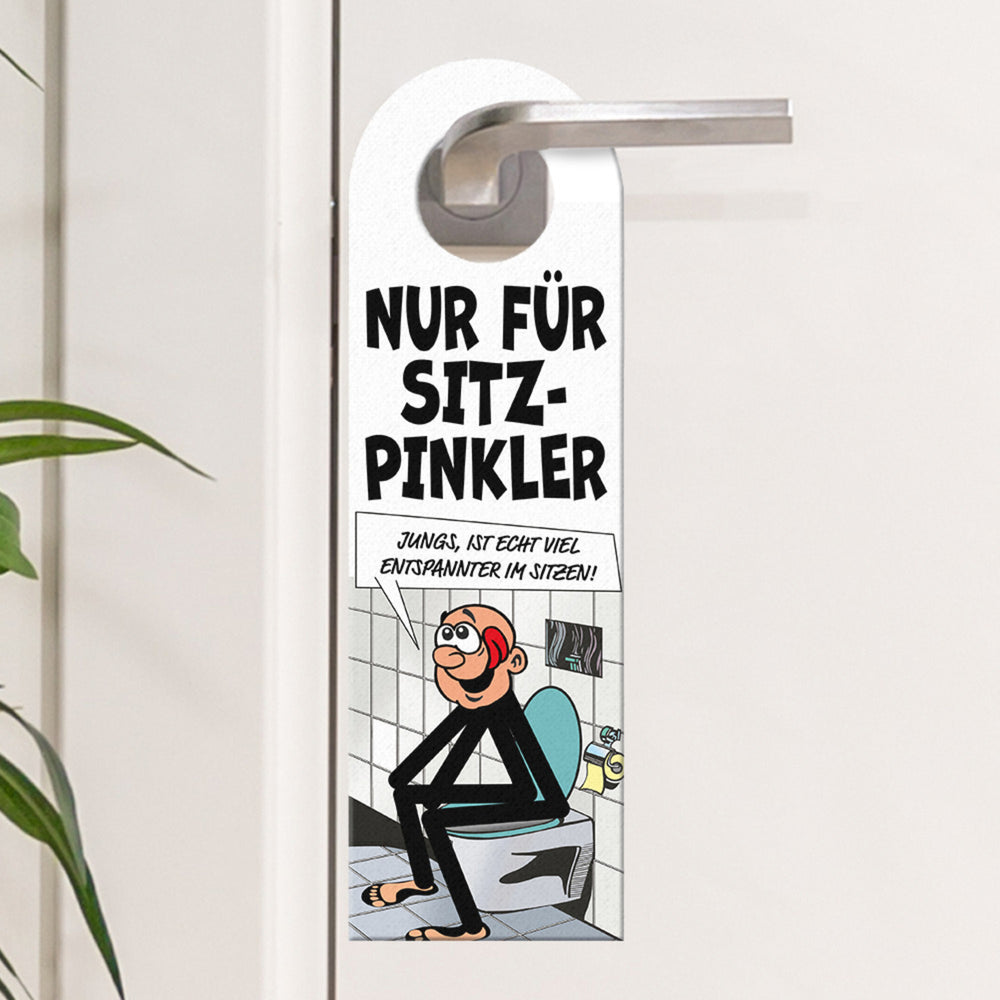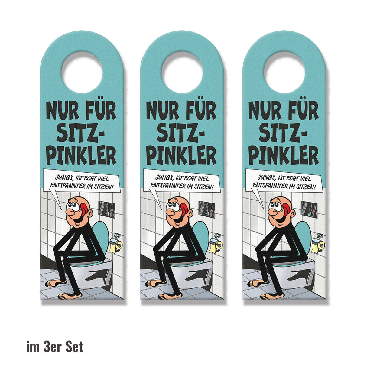 - 1x Bitte im Sitzen pinkeln Türhänger im Comic-Stil schwarz in der gewählten Setgröße