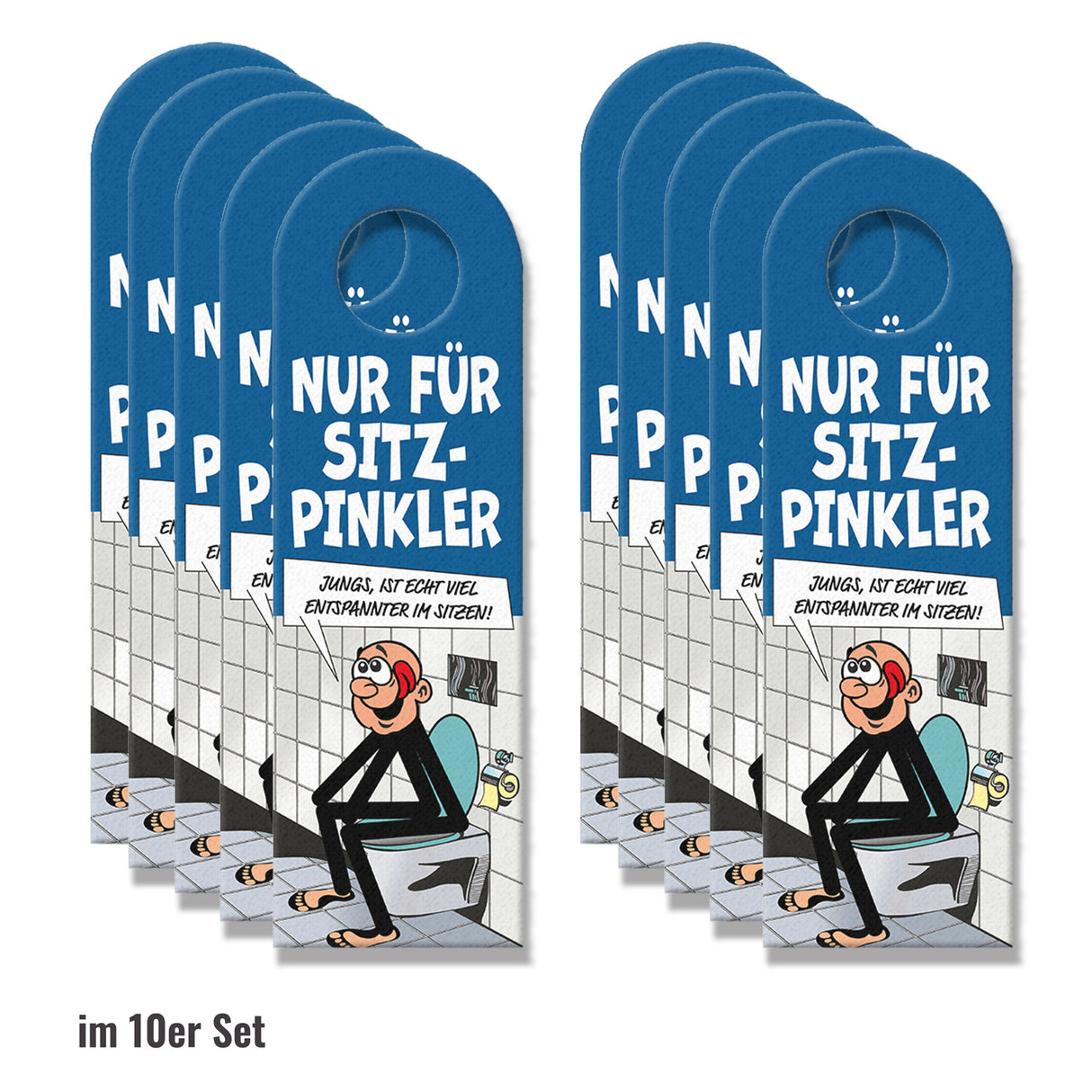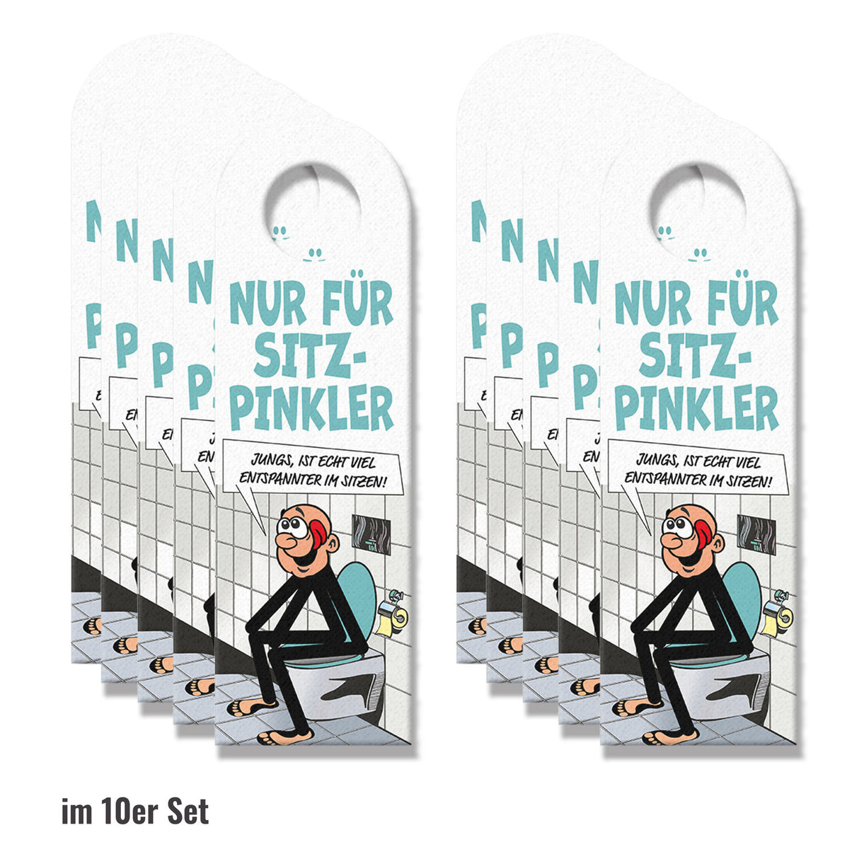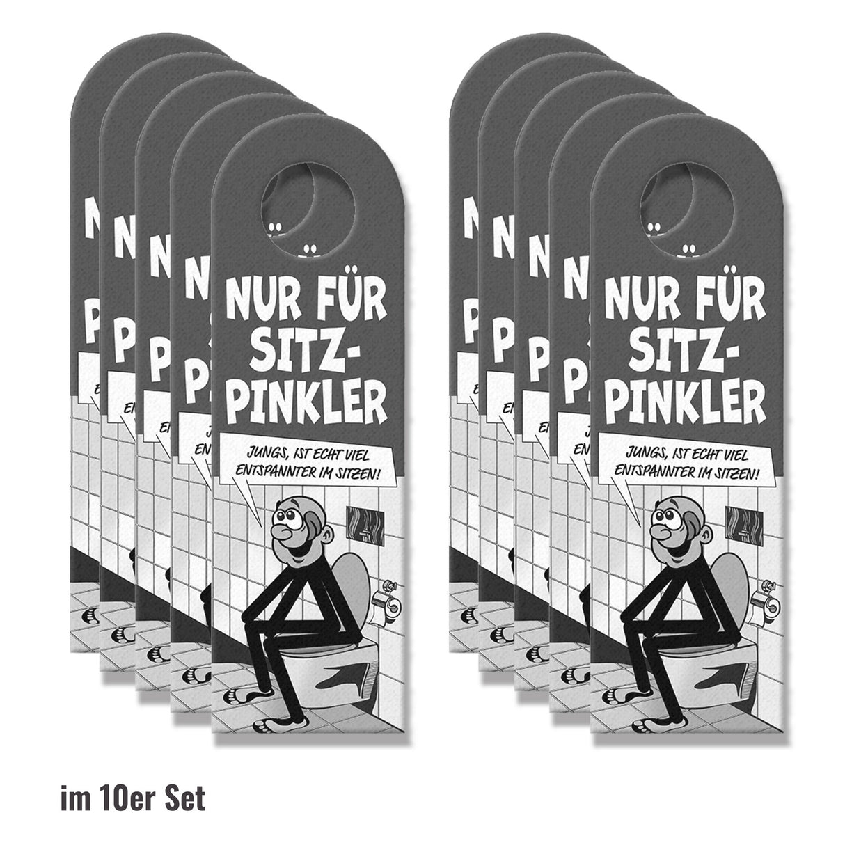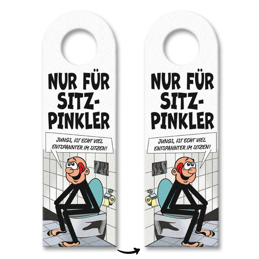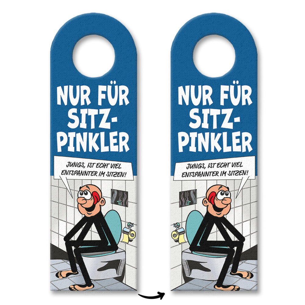 - 1x Bitte im Sitzen pinkeln Türhänger im Comic-Stil schwarz in der gewählten Setgröße