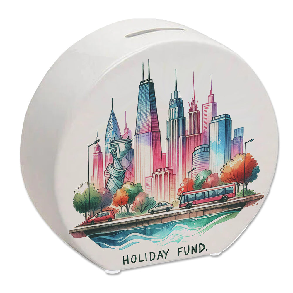 - Mach deine Träume wahr mit der Städtetrip Urlaubskasse Spardose! Diese coole, urbane Spardose zeigt die Skyline einer modernen Metropole und den motivierenden Spruch "Holiday Fund". Perfekt, um für den nächsten großen Abenteuer-Urlaub zu sparen!