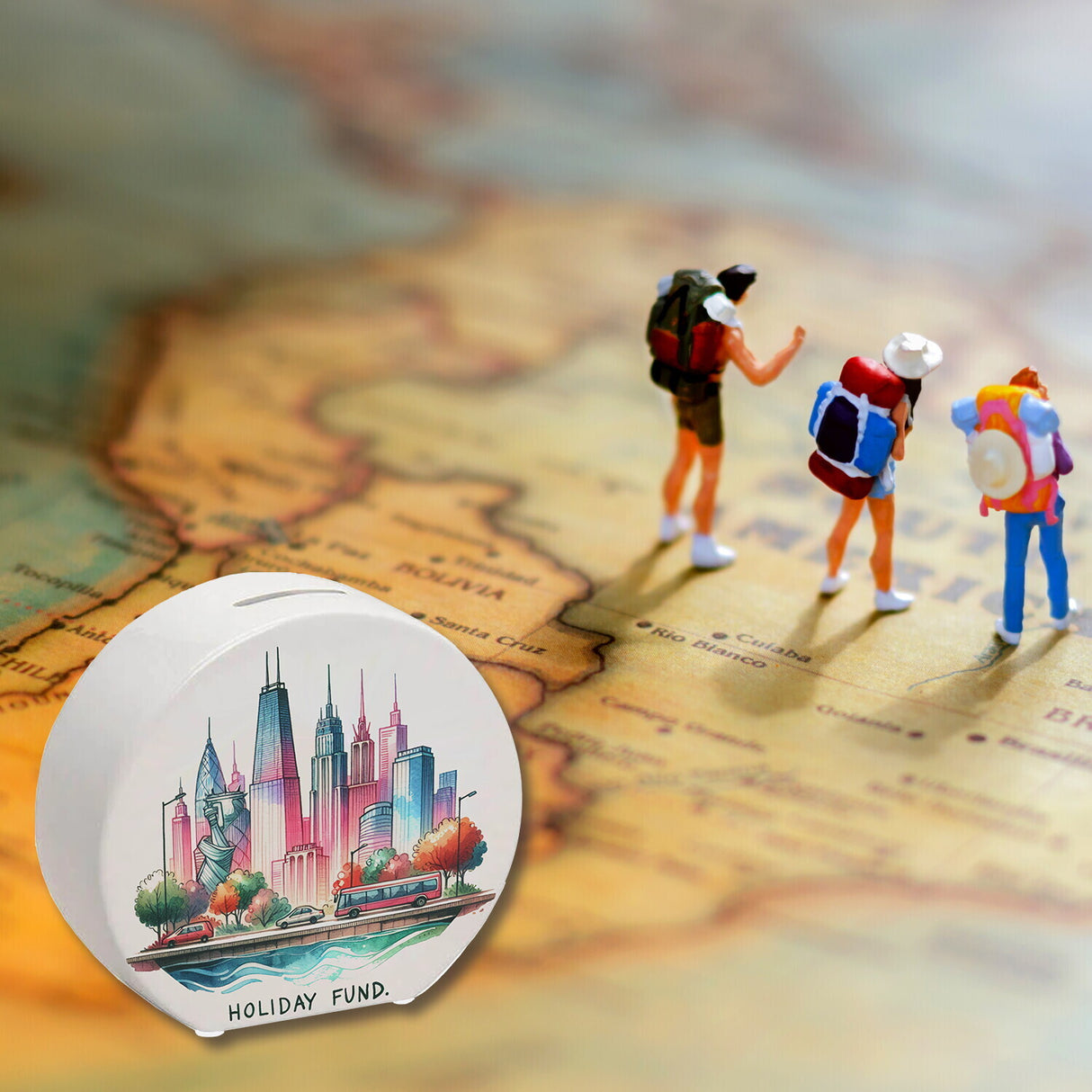 Städtetrip Urlaubskasse Spardose mit Spruch Holiday Fund
